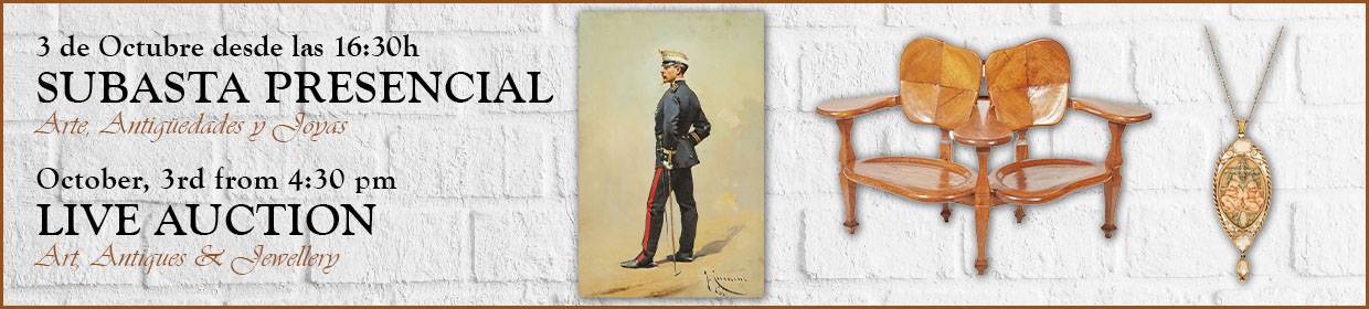 Realizamos subastas online de arte y antigüedades de manera periódica. Subastamos joyas, relojes, plumas, monedas, billetes, sellos, antigüedades, artes decorativas en general, muebles, pintura, escultura y obra gráfica.