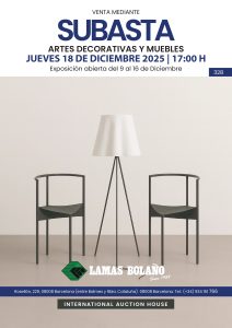 18 Diciembre, 17h | Artes Decorativas y Muebles, lotes nº2000-nº2337. Pintura, lotes nº3000-nº3245.