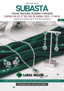 17 Diciembre, 17h | Joyas, Relojes, Plumas, Bolsos y Accesorios de Lujo, lotes nº1-nº313. Escultura Pintura y Obra Gráfica, lotes nº1000-nº1218.