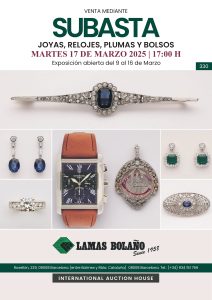 17 Marzo, 17h | Joyas Modernas y Antiguas, Relojes y Plumas, lotes nº1-nº189. Artes Decorativas y Muebles, lotes nº1000-nº1257.