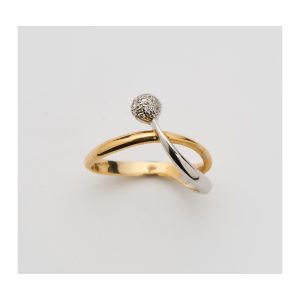Sortija diseño entrelazado en oro bicolor con pavé de diamantes talla brillante.