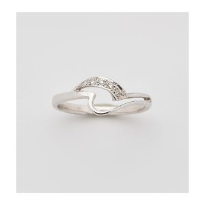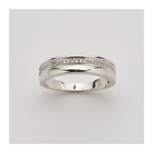 Sortija en oro blanco con banda central de diamantes talla brillante.