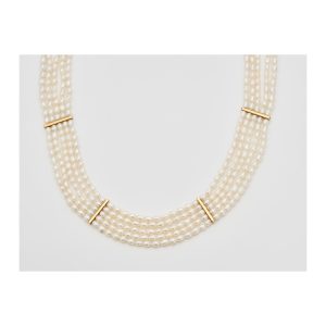 Collar de cinco hilos de perlas cultivadas de agua dulce de 3,5 – 4 mm. con entrepiezas y cierre en oro.