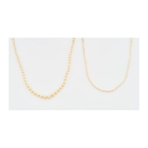 Dos collares de perlas cultivadas, uno de agua dulce, 2,5 y 6,5 – 3 mm. con cierres en oro.