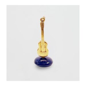 Colgante diseño guitarra en oro con base circular en resina azul, 3,3 cm.