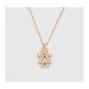 Gargantilla en oro rosa con motivo diseño niña de diamantes talla brillante.