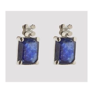 Pendientes en oro blanco con zafiro azul talla octogonal coronado por diamante talla brillante.
