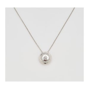 Gargantilla en oro blanco con motivo circular de diamantes talla brillante.