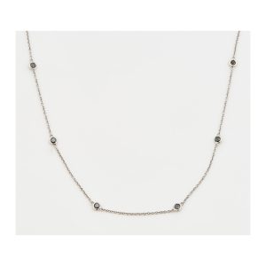 Gargantilla de cadena forjada en oro blanco con chatones de diamantes negros talla brillante alternados.