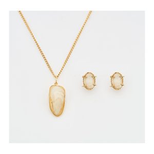 Juego de colgante con cadena y pendientes en oro y hueso de corvina.