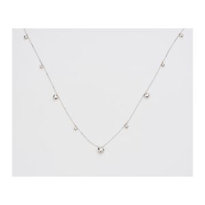 Gargantilla en oro blanco con corazones y diamantes talla brillante alternados.