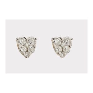 Pendientes diseño corazón en oro blanco con diamantes talla brillante engastados en garras, 0,5 cm.