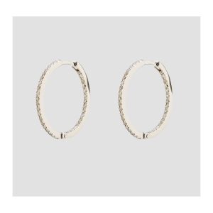 Pendientes criollas en oro blanco con frente e interior de diamantes talla brillante.