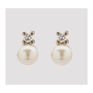 Pendientes tu y yo en oro blanco con perla cultivada de 9 mm. y diamante talla brillante engastado en garras.
