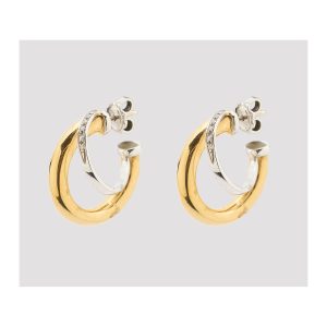 Pendientes diseño doble criolla en oro bicolor, la de oro blanco con diamantes talla brillante.