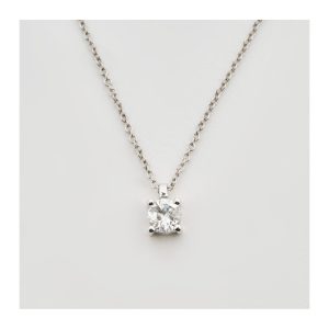 Gargantilla en oro blanco con diamante talla brillante engastado en garras.