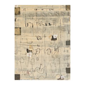 Técnica mixta y collage sobre tela. Firmado y fechado en 1990 al dorso.