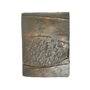 Plafón escultórico en bronce patinado con soporte en madera al dorso.