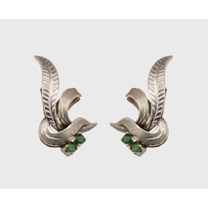 380,00 €Pendientes diseño hojas en oro blanco mate y brillo con esmeraldas engastadas en garras.