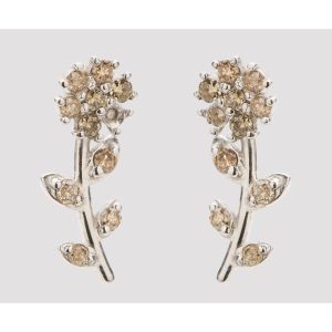 Pendientes diseño flor en oro blanco con diamantes brown talla brillante, 1 cm.
