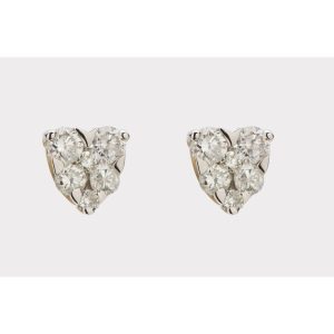 Pendientes diseño corazón en oro blanco con diamantes talla brillante engastados en garras, 0,5 cm.