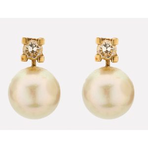 Pendientes con perla cultivada de 8 mm. y cierre a presión en oro.