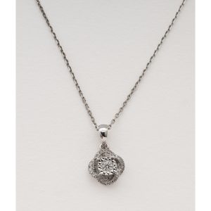 Colgante y cadena en oro blanco con diamantes talla brillante engastados en garras.