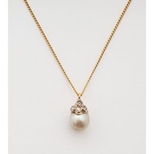 Cadena con colgante de perla cultivada de 7 mm. y diamantes talla rosa.