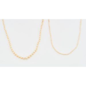 Dos collares de perlas cultivadas, uno de agua dulce, 2,5 y 6,5 – 3 mm. con cierres en oro.