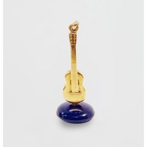 Colgante diseño guitarra en oro con base circular en resina azul, 3,3 cm.