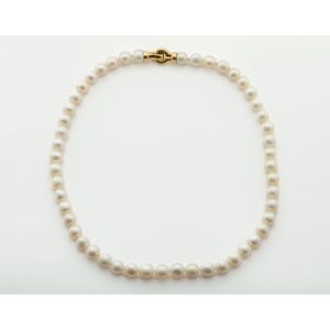 Collar de perlas cultivadas de agua dulce 8-9 mm. con cierre de gancho en oro.