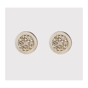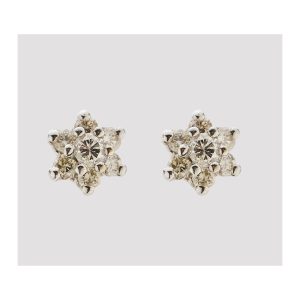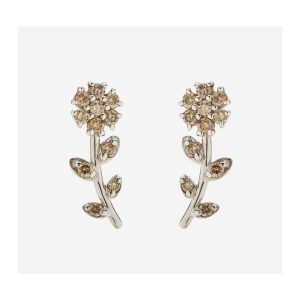 Pendientes diseño flor en oro blanco con diamantes brown talla brillante, 1 cm.