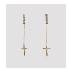 Pendientes diseño candado en oro con diamantes talla brillante.