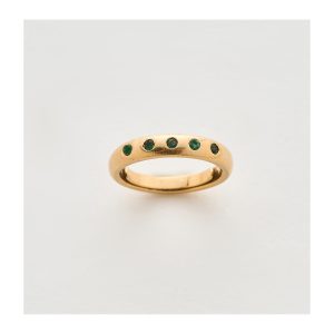 Sortija en oro mate y brillo con cabujones de turquesa de 6 y 3 mm.