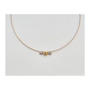 Collar de cuentas esféricas de ojo de tigre 9-9,5 mm. con cierre circular en oro mate y brillo.