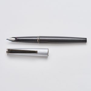 MONTBLANC «Caresa 422». Cuerpo en resina negra y capuchón en acero matizado, c.1980. Sistema de carga por cartucho.