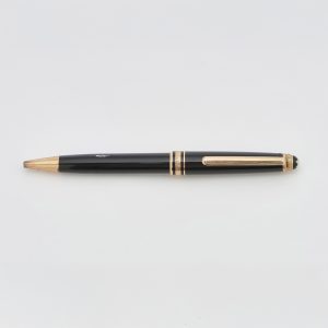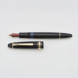 MONTBLANC «Meisterstück Nº146». Estilográfica en resina negra con detalles en plaqué oro. Plumín en oro 14K. Sistema de carga por pistón.
