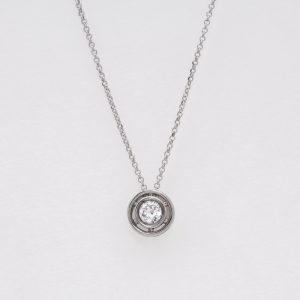 Gargantilla en oro blanco con diamante talla brillante engastado en chatón.