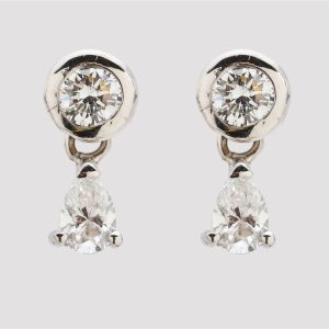 Pendientes en oro blanco con diamantes tallas perilla y brillante engastados en garras y chatón.