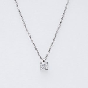 Gargantilla en oro blanco con diamante talla brillante engastado en garras.