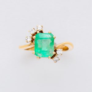 Sortija en oro con esmeralda talla octogonal y diamantes talla brillante.