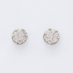 Pendientes rosetón en oro blanco con diamantes talla brillante engastados en garras.