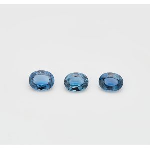Tres zafiros azules talla oval, dos de 7 x 5 mm y el tercero de 8 x 6 mm.
