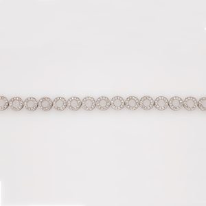 Pulsera en oro blanco con círculos calados de diamantes talla brillante engastados en garras.