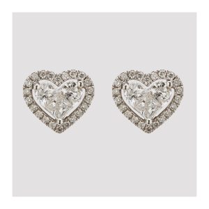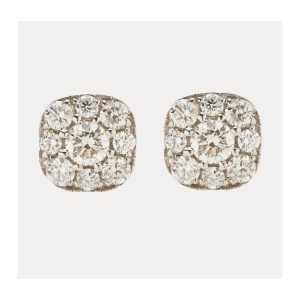 Pendientes rosetón en oro blanco con diamantes talla brillante.
