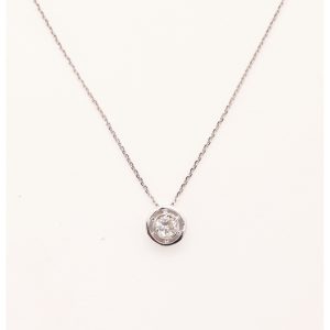 Gargantilla en oro blanco con diamante talla brillante antigua engastado en chatón.