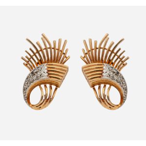 Pendientes diseño media criolla en oro bicolor y circonita.