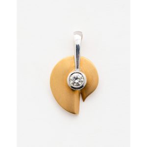 Colgante en oro bicolor mate y brillo con diamante talla brillante engastado en chatón, 2,5 x 1,4 cm.