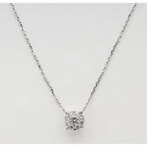 Gargantilla en oro blanco con rosetón de diamantes talla brillante.