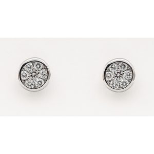 Pendientes circulares en oro blanco con pavé de diamantes talla brillante.